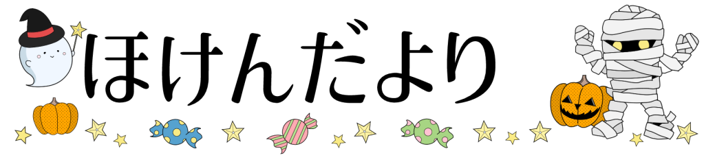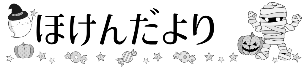 月表示なしのハロウィンのほけんだよりタイトルイラストです。